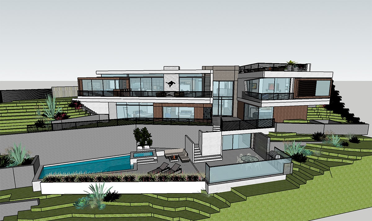 6,142 SF ultra high-end new construction residence. After a year of construction, the home was lost to the Pacific Palisades fire on Jan. 7, 2025. Rebuild is underway, with completion targeted for Q4 2026.